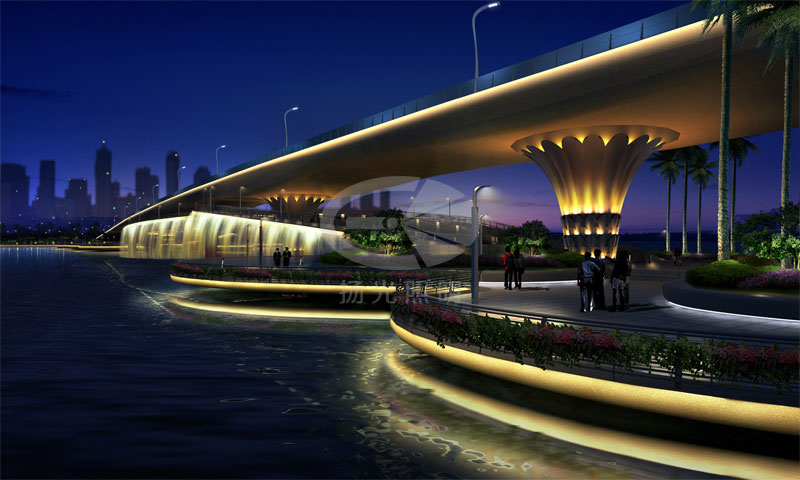 橋梁夜景燈光設(shè)計方案的創(chuàng)意主要是通過燈光對橋梁結(jié)構(gòu)的充分對比和融合,體現(xiàn)橋梁結(jié)構(gòu)獨特的結(jié)構(gòu)美。在燈光設(shè)計方案中,現(xiàn)代照明藝術(shù)手法與現(xiàn)代橋梁技術(shù)有機(jī)結(jié)合,充分展現(xiàn)橋梁夜間之美,最終融入現(xiàn)代時尚的國際商業(yè)城市氛圍。